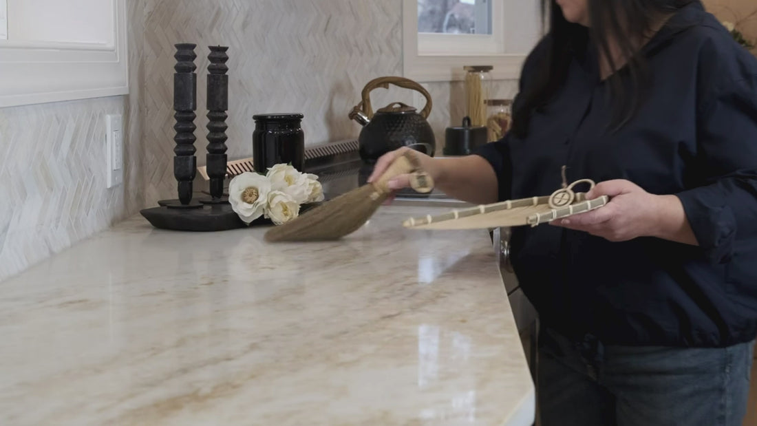Because the bristles are made from real grass flowers, they naturally carry some pollen dust. Our artisans pre-clean each broom, but a small amount may still fall out during the first few uses—this is normal and will go away quickly.